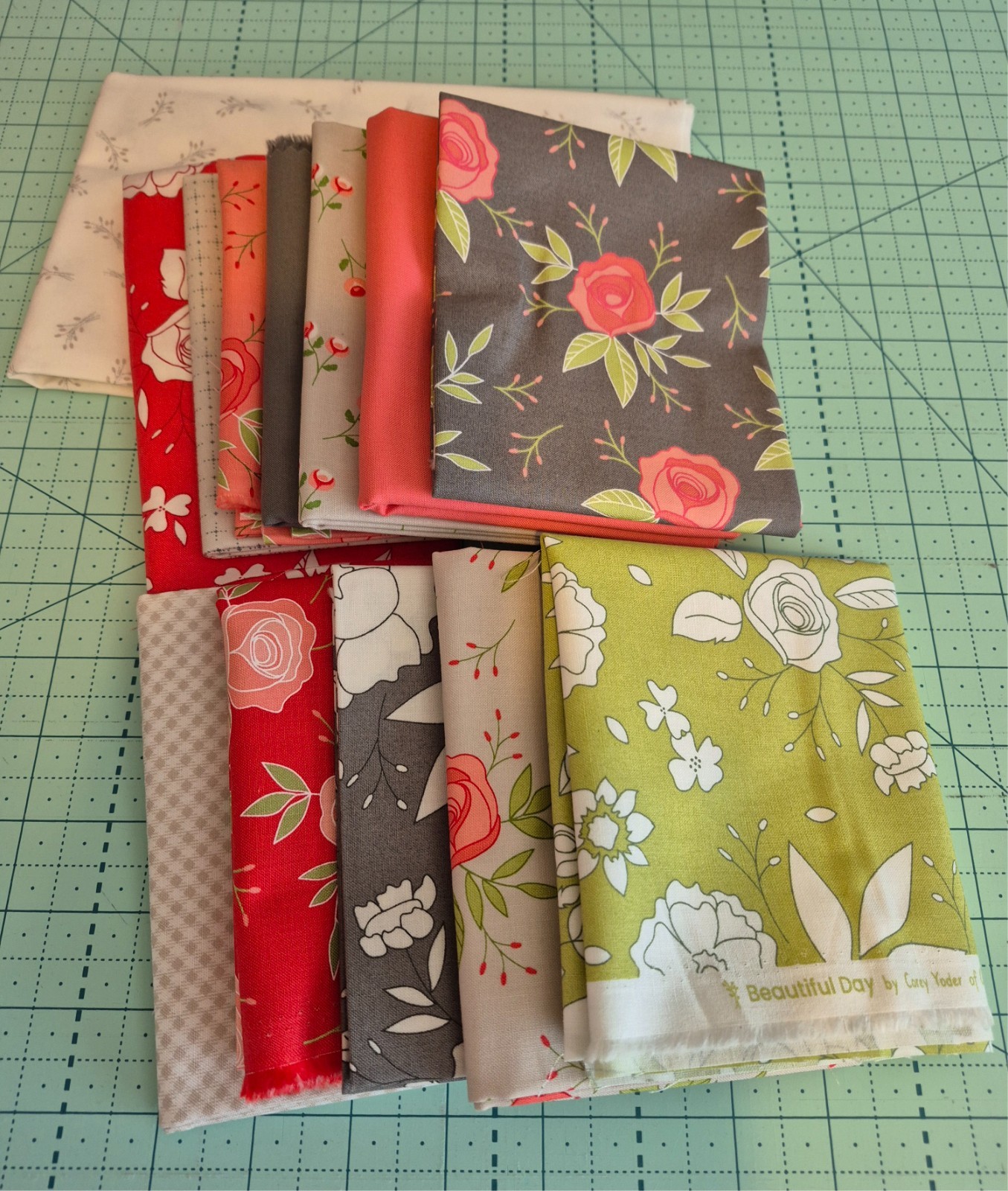 C Moda BEAUTIFUL DAY 12 Fat Qtr Bundle + 1/2 Yd Background Fabric COREY YODER