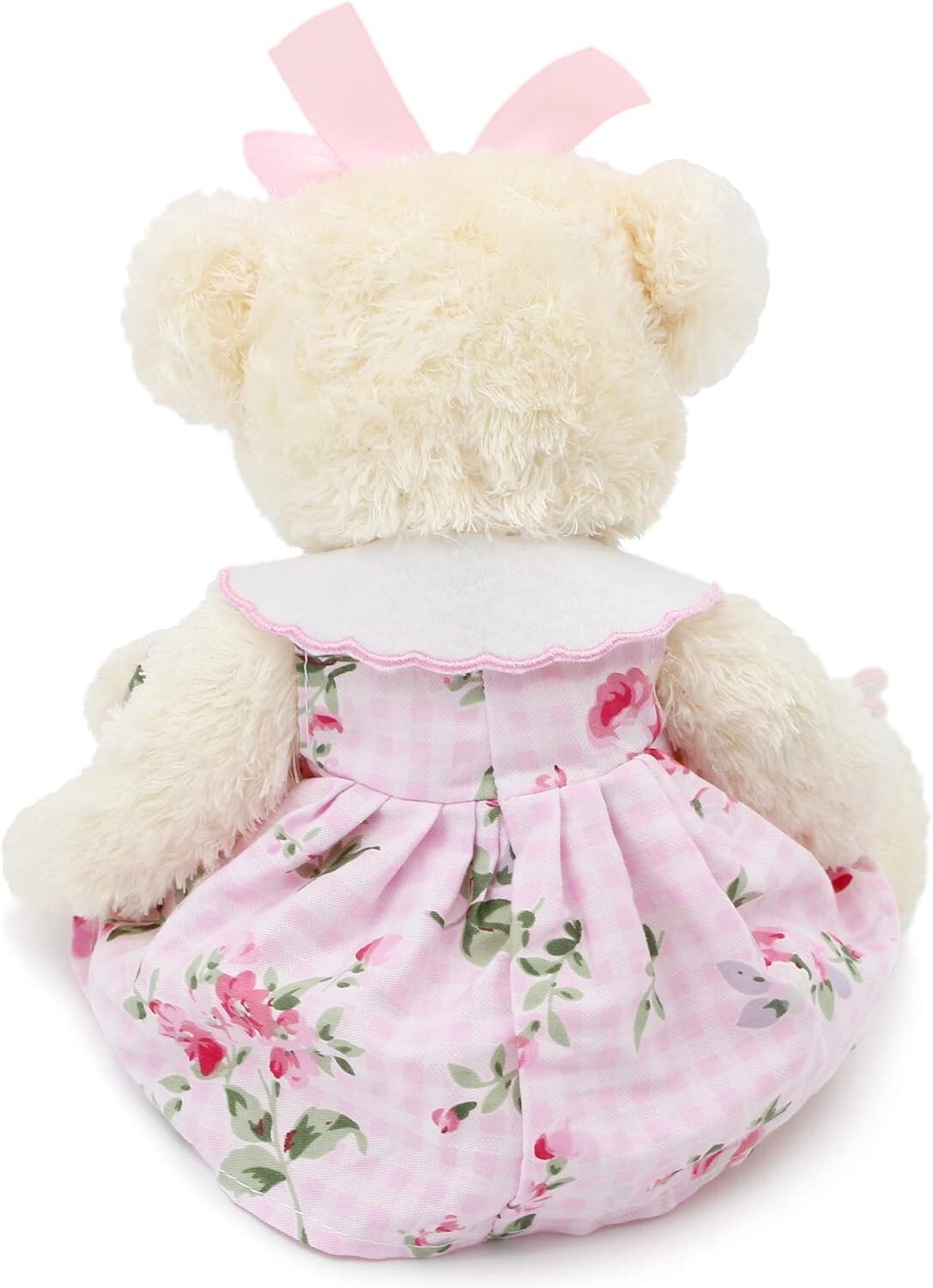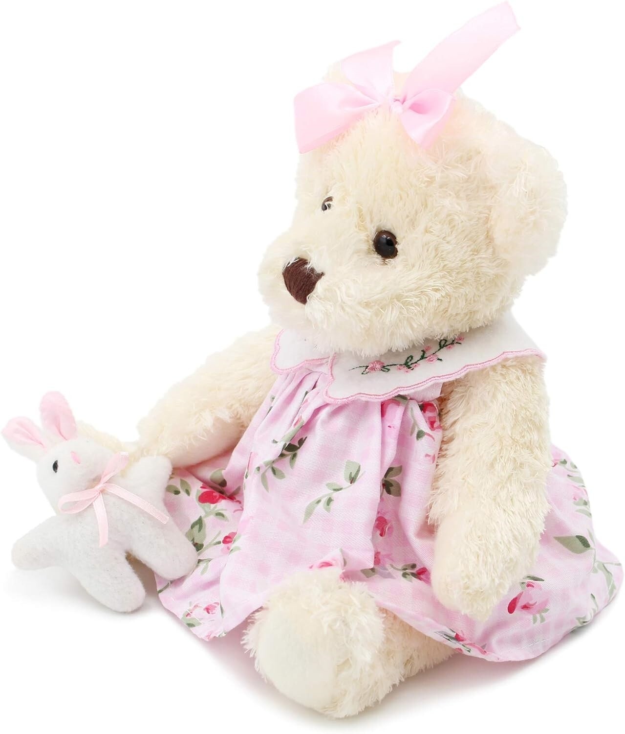Osito De Peluche Bebé Pequeño Con Tela Linda De 10" Teddy Bear Con Vestido Rosa.