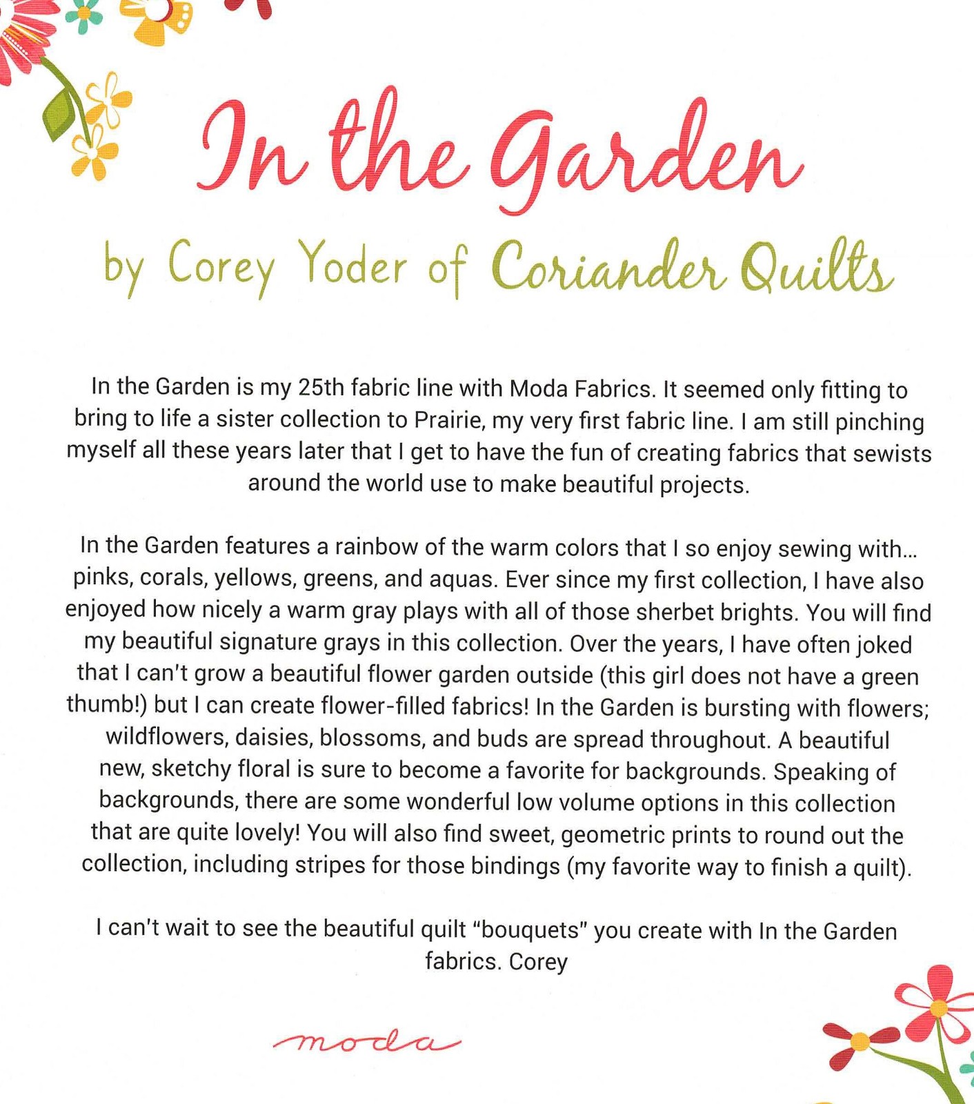 In The Garden Moda Charm Pack, 42 100% Cotton 5-inch Precut Fabric Squares