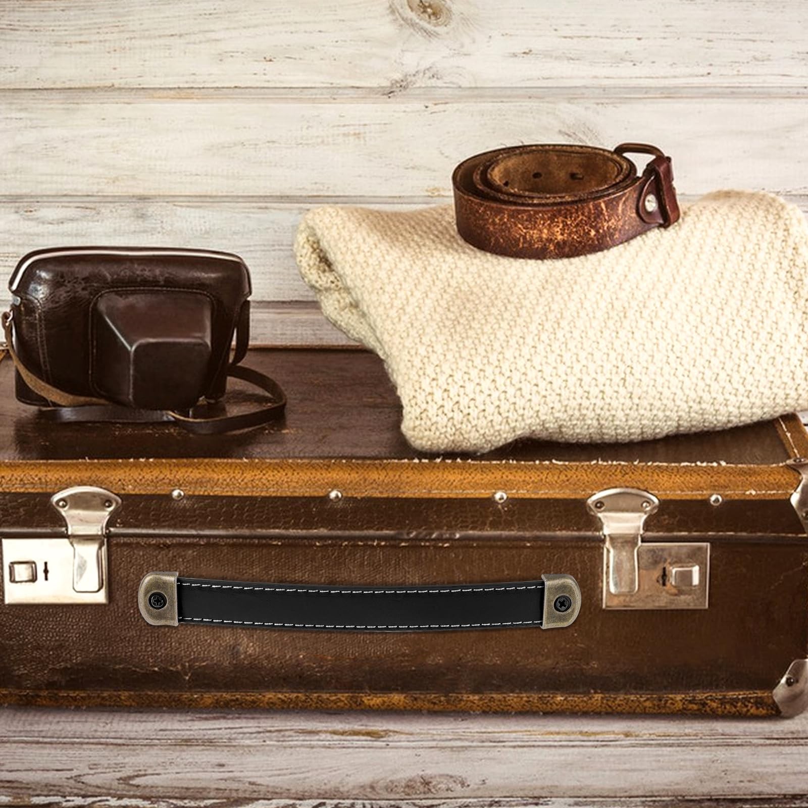 Leather handles with mounting screws for luggage handles