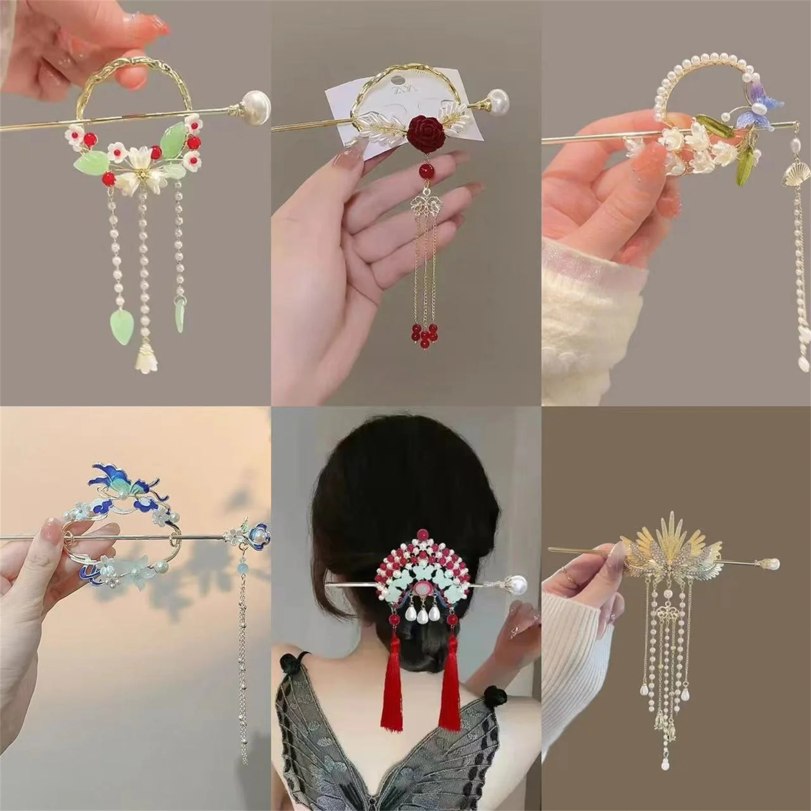 Ethnic Style Hairpin For Women Exquisite Glitter Flower Tassel Hairpin Ancient Style Coiled Hair Hairpin Girls Hair Accessories $5.08
