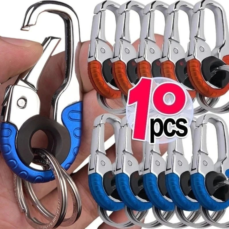 1-10pcs Men's Keychain Hook Stainless Steel Buckle Outdoor Carabiner Climbing Tool Double Ring Fishing Key Ring Car Accessories $2.98