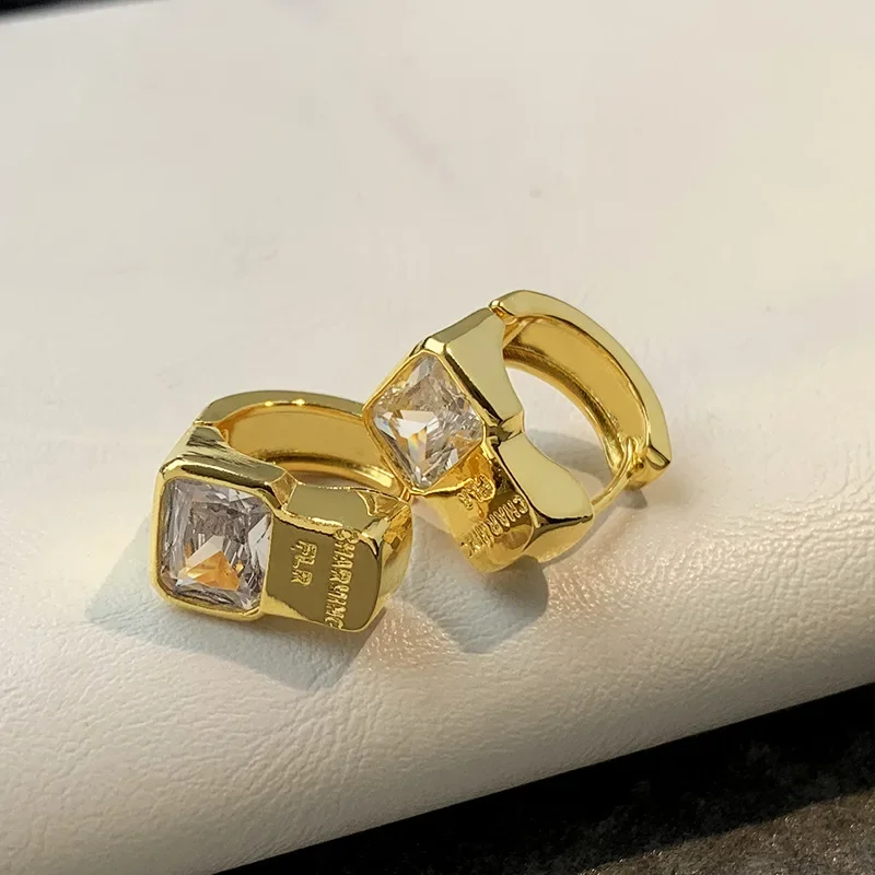 Wholesale French Premium Zircon Square Gold Color Earrings Gift Anniversary Party Jewelry Fashion Accessories $3.44