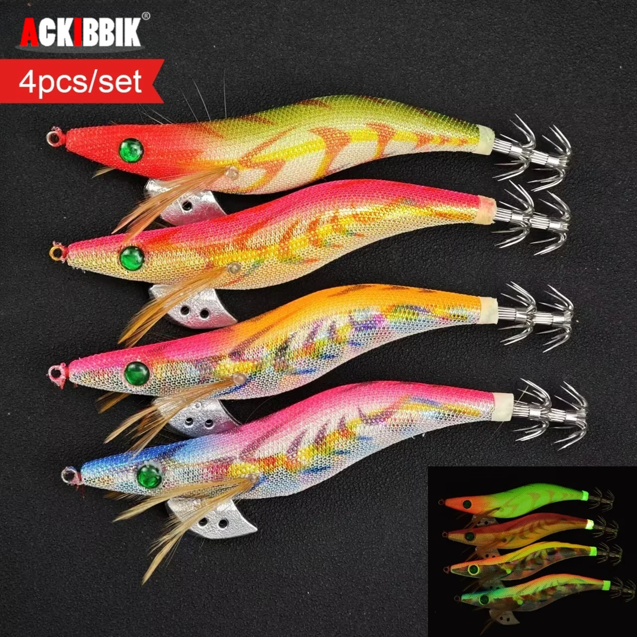 Ackibbik 4pcs/set Glow Shrimp Fishing Lures Saltwater Shrimp Prawn Lures Octopus Fishing Accessories Squid Jigs Fishihook $5.68