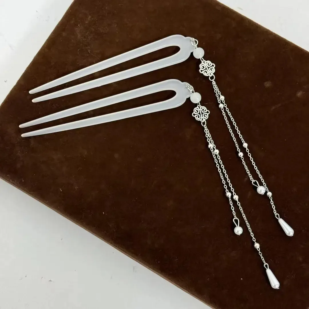 1/2pcs U Shaped Hairpin for Women Elegant Resin Tassel Hair Stick Girls Trendy Jewelry Hair Accessories Fashion Headwears $4.32
