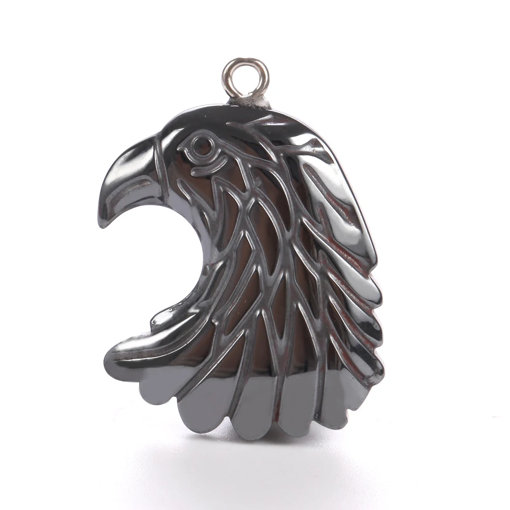 Nature Eagle Hematite Stone Bone Pendant Bead Charm Metal 30x25x5mm Jewelry DIY Necklace Making Accessories For Women Men $2.08