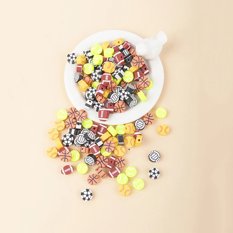 100pcs Sport Ball Polymer Clay Beads Baseball Volleyball Basketball Spacer Beads For Jewelry Making Diy Accessories $4.24