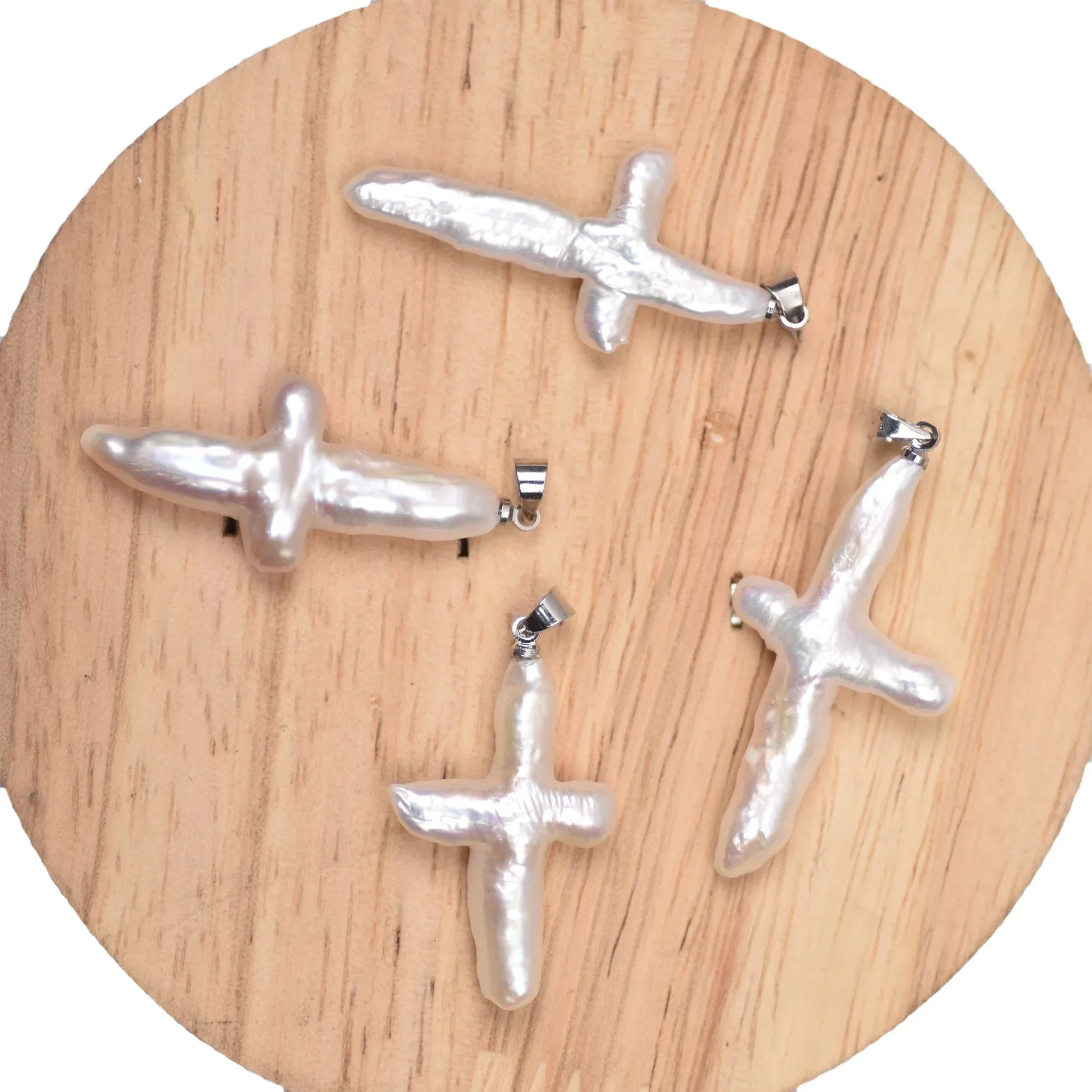 24*30mm Natural Freshwater Pearl Pendant Cross shape Pendants for Jewelry Making DIY Necklace Accessories $3.50