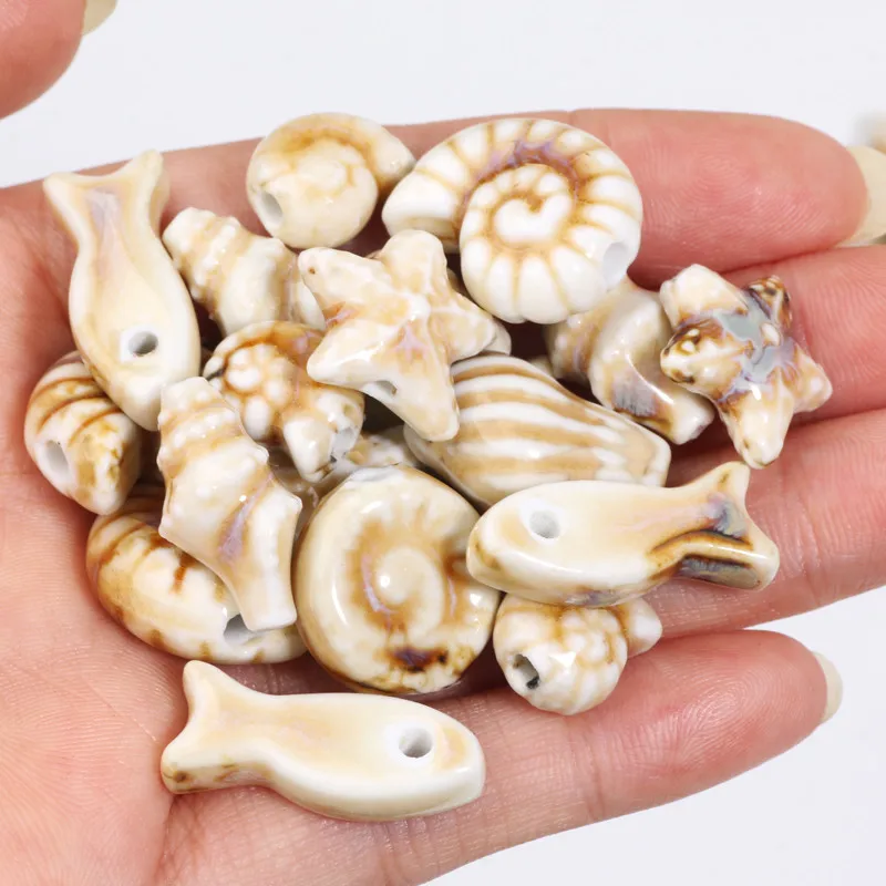 10pcs/Lot Cute Ceramic Conch Fish Shell Sea Star Spacer Beads Loose Spacer BeadsFor Diy Earrings Jewelry Making Accessories $4.25