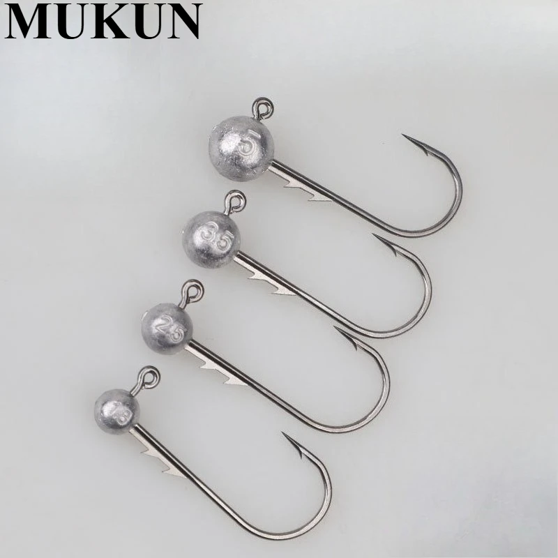 MUKUN 1.8g 2.5g 3.5g 5g fishing hook ,jig hook round head crank bass tackle ,carbon steel hooks for soft baits $2.31