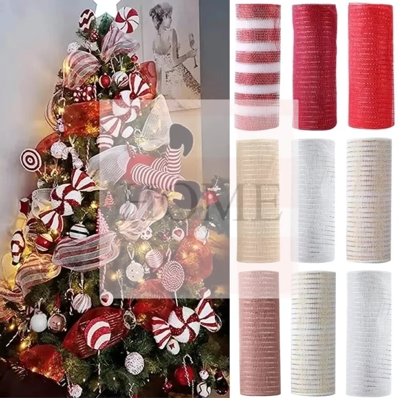 26cm 10Yards Christmas Fishing Net Yarn Ribbon DIY Decoration Wreath Christmas Tree Decoration Accessories $5.90