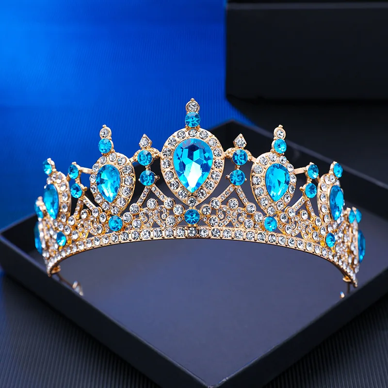 Baroque Bridal Hair Accessories Blue Pink Crystal Women Diadem Princess Queen Tiara And Crown Headbands For Girls Wedding Party $8.63