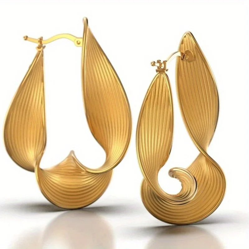 Vintage Classic Twisted Designed Golden Plated Hoop Earrings for Women's Fashion Exquisite Banquet Vacation Jewelry Accessories $4.03