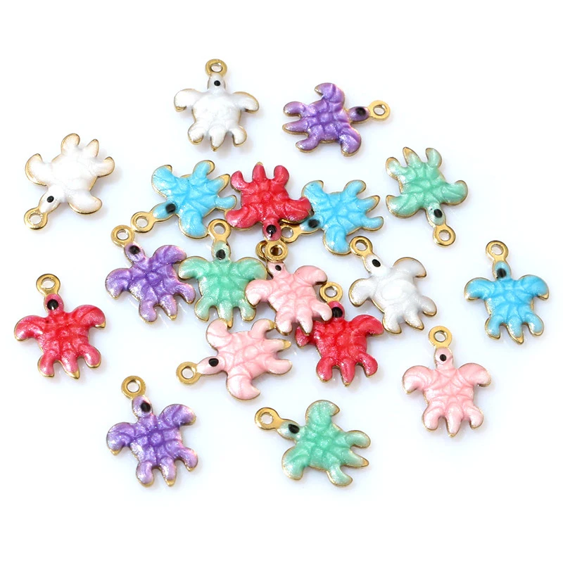 20pcs 12x9mm Enamel Turtle Small Charms Pendant Stainless Steel for Earrings Necklace Bracelet DIY Jewelry Making Accessories $2.41