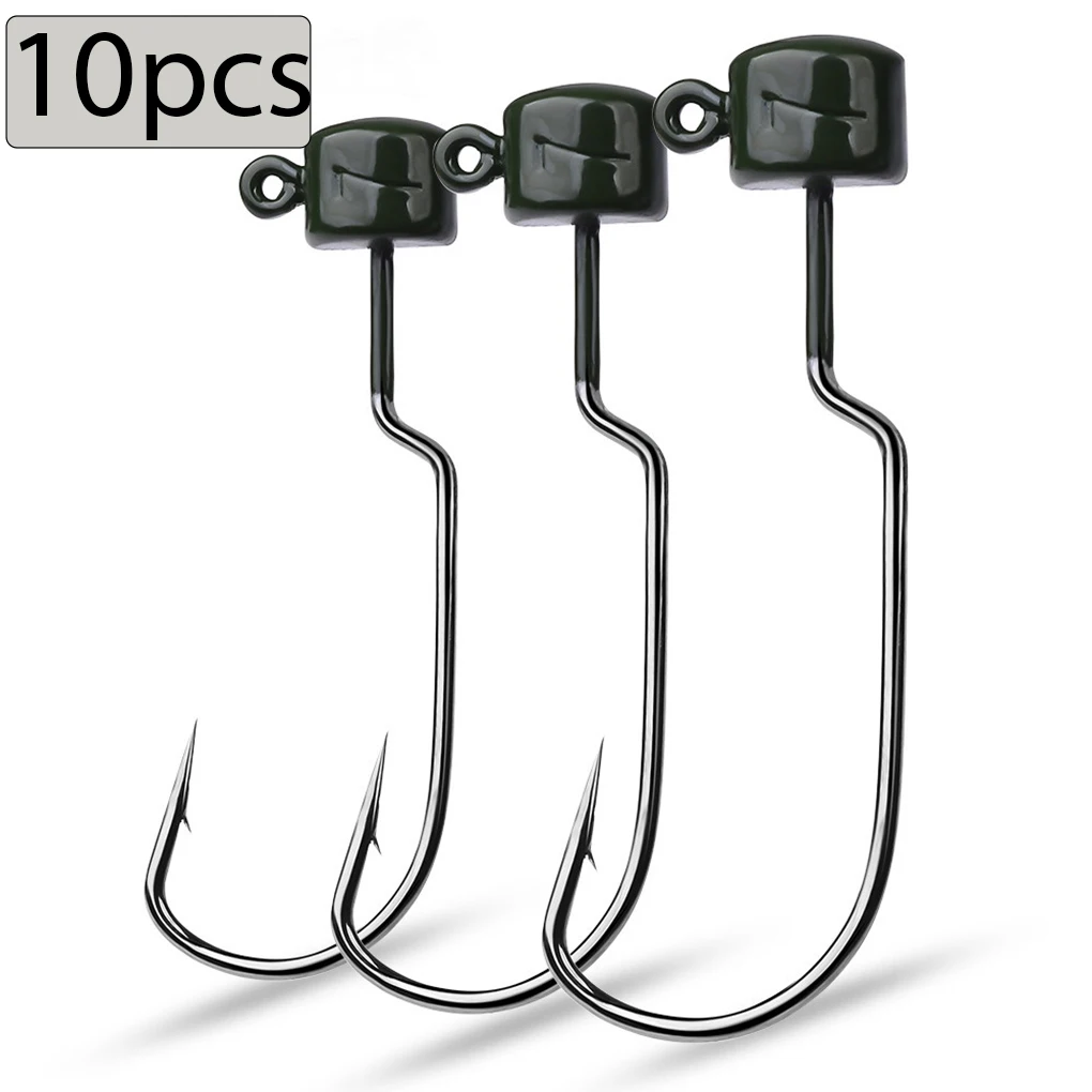 10pcs Ned Rig Jig Head Wedless Sharp Barbed Hook For Soft Lure Bass Pike Trout Weighted Worm Bait Fishing Tackle Accessories $2.60