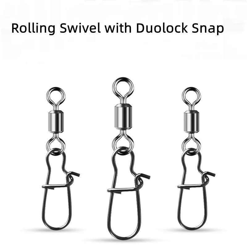 ApexMarine 10pcs Stainless Steel Fishing Rolling Swivel with Snaps 5# 7# 10# Duo-Lock Connector Saltwater Lure Accessories $3.55