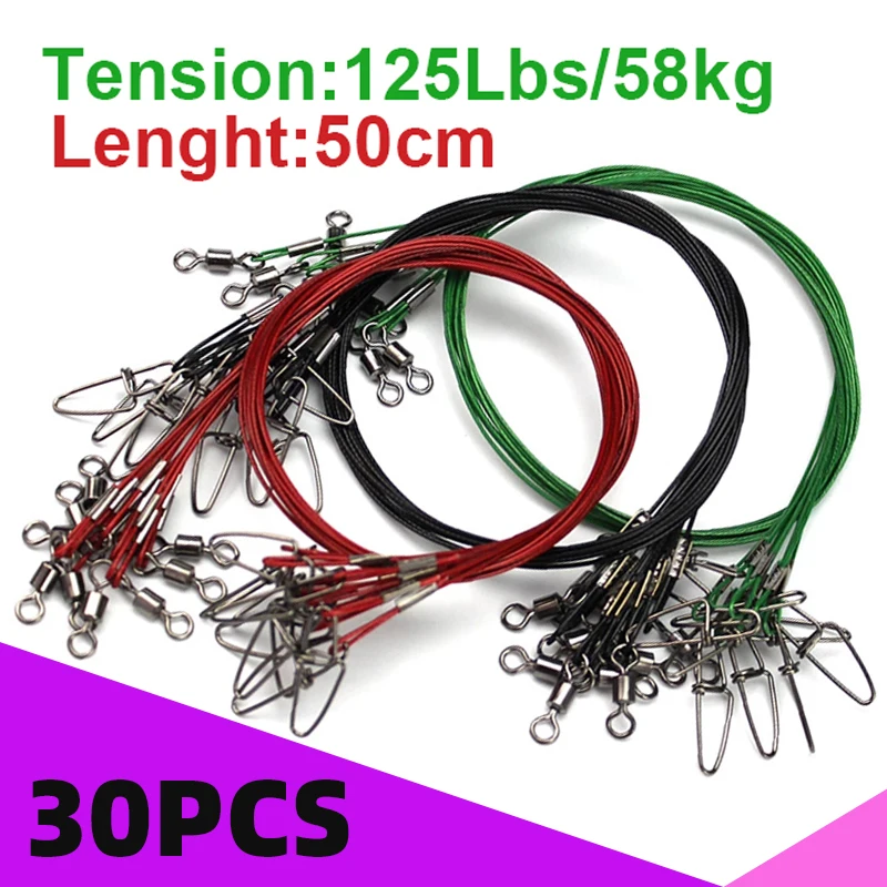30pcs 50cm 125LB Thick Wire Steel Fishing Leader Trace With Swivel Snap Lure Jig Hook Connector Saltwater Fishing Accessories $9.65