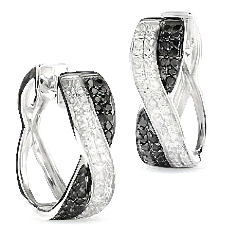 Fashion Black/clear Synthetic Zirconia Inlaid Twist Shape Hoop Earrings Women Simple Design Banquet Festival Jewelry Accessories $5.35