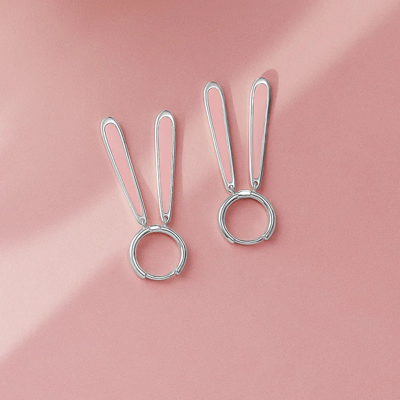 Real 925 Sterling Silver Pink Enamel Rabbit Ears Hoop Earring for Women Cute Fine Jewelry Minimalist Accessories Aretes De Mujer $3.82