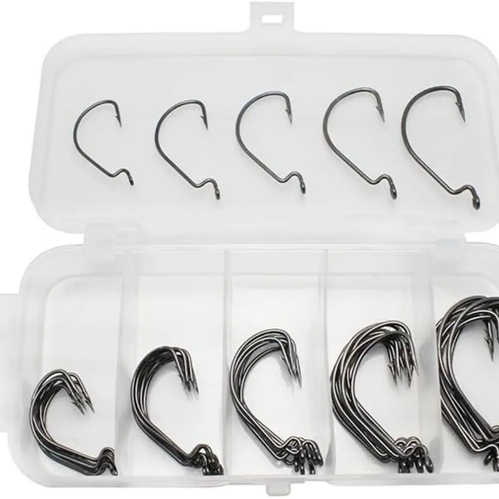 50-Count High Carbon Steel Bass Hooks, Offset Worm Design, Wide Gap for Sea Fishing Tackle Accessories $16.12