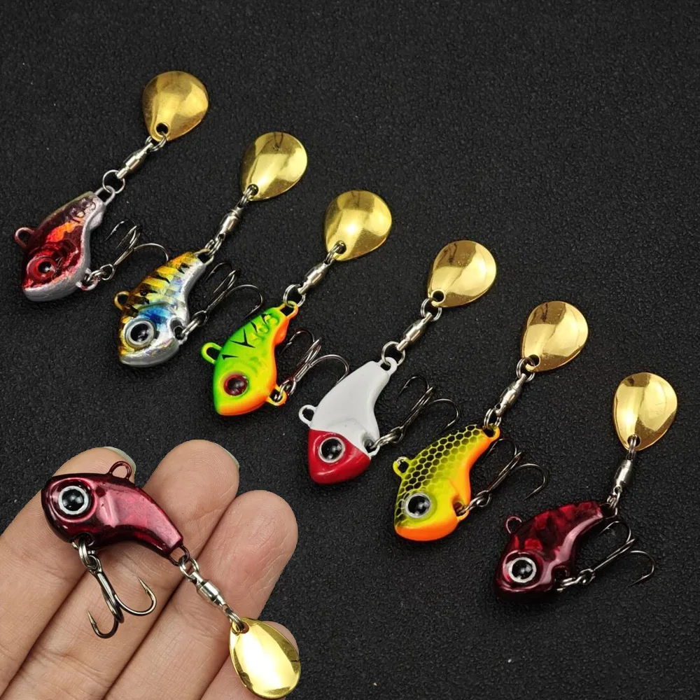 1pc 10g Metal Mini VIB with Spoon Fishing Lure Saltwater Rotating Sequin Small Vib Lure Sea Fishing Accessories Bass Lures $3.40