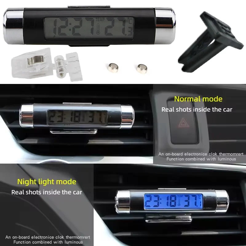 Portable 2-in-1 car air outlet thermometer/digital electronic clock, LED digital display, with backlight automotive accessories $4.67