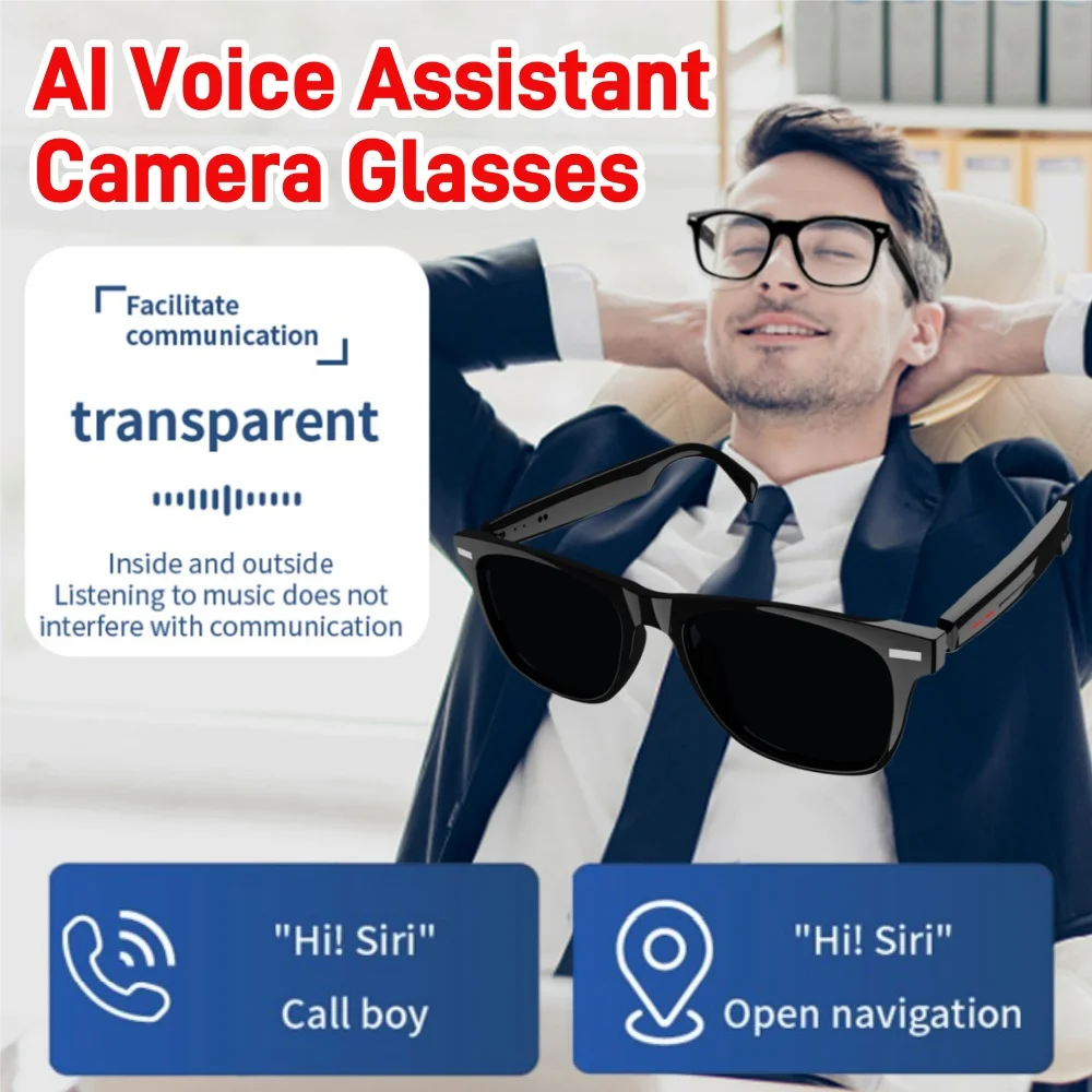 Smart AI Glasses Camera Photo Answer Translation BT Call Voice Assistant Control Smart Glasses Open Ear Sound Mic & Speakers $19.88
