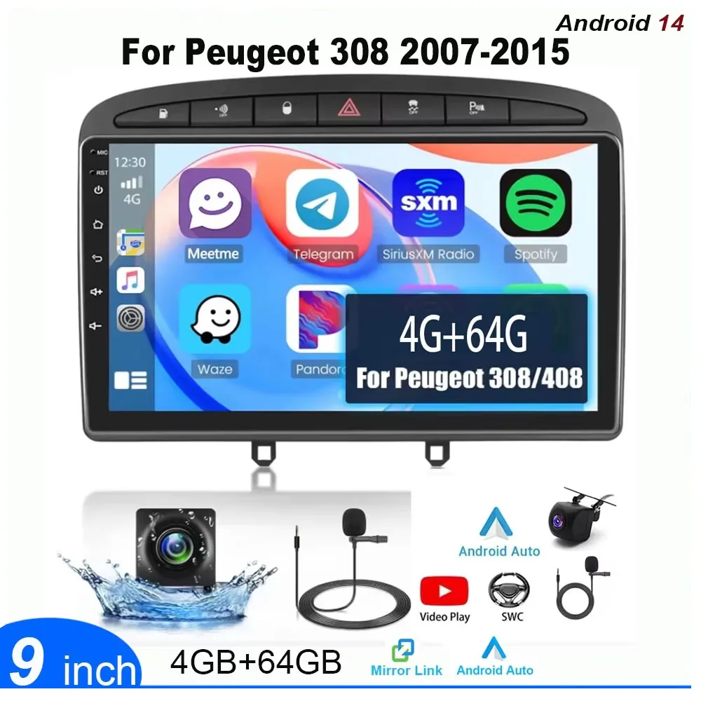 9" 4G+64G 2 Din Multimedia Video Player For Peugeot 308 2007 - 2015 Android 13 Central Multimedia Smart car systems Head Unit $113.01