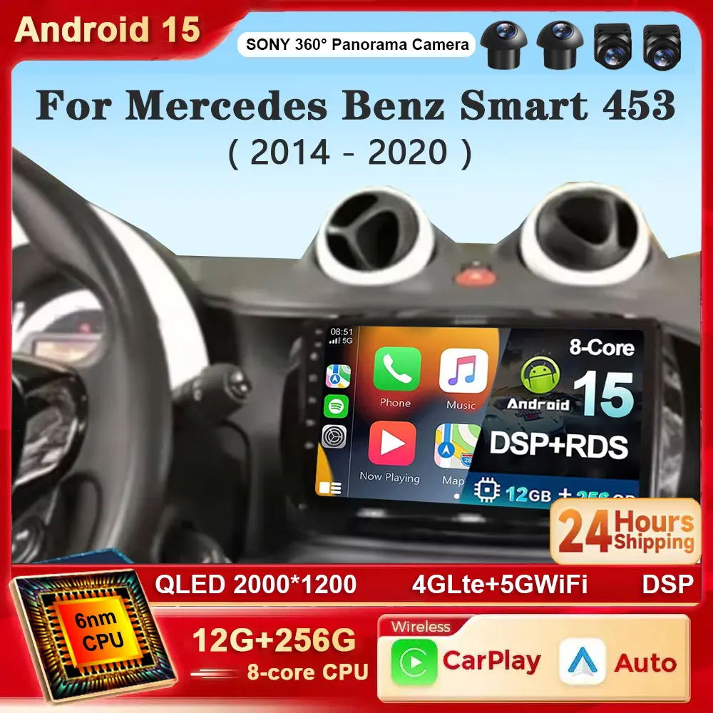 Android 15 Car Radio For Benz Smart Fortwo 2006 - 2015 Head Unit Viedo Player Autoradio DVD 5G WIFI Wireless Carplay Auto GPS BT $83.10