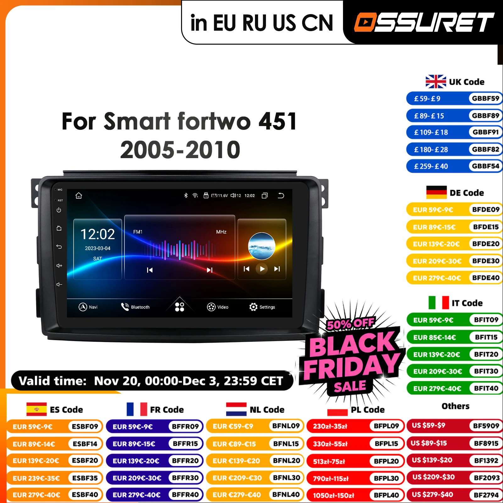 Android Auto For Mercedes Benz Smart Fortwo 451 2005-2015 Car radio GPS navigation Stereo video Multimedia Player 2Din Head Unit $75.84