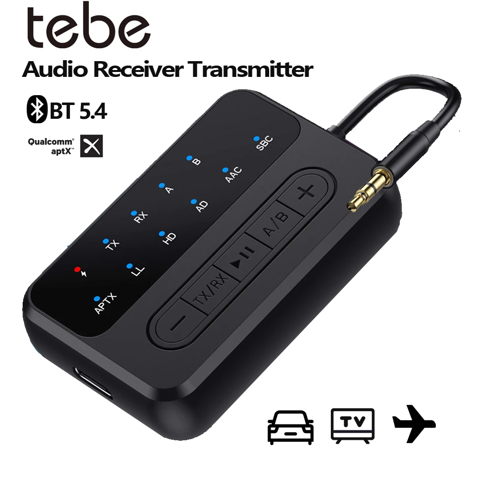 Tebe 3.5mm Aux aptX Bluetooth 5.4 Audio Receiver Transmitter AAC Wireless Stereo Music Adapter Dual Connection for TV PC Speaker $15.96