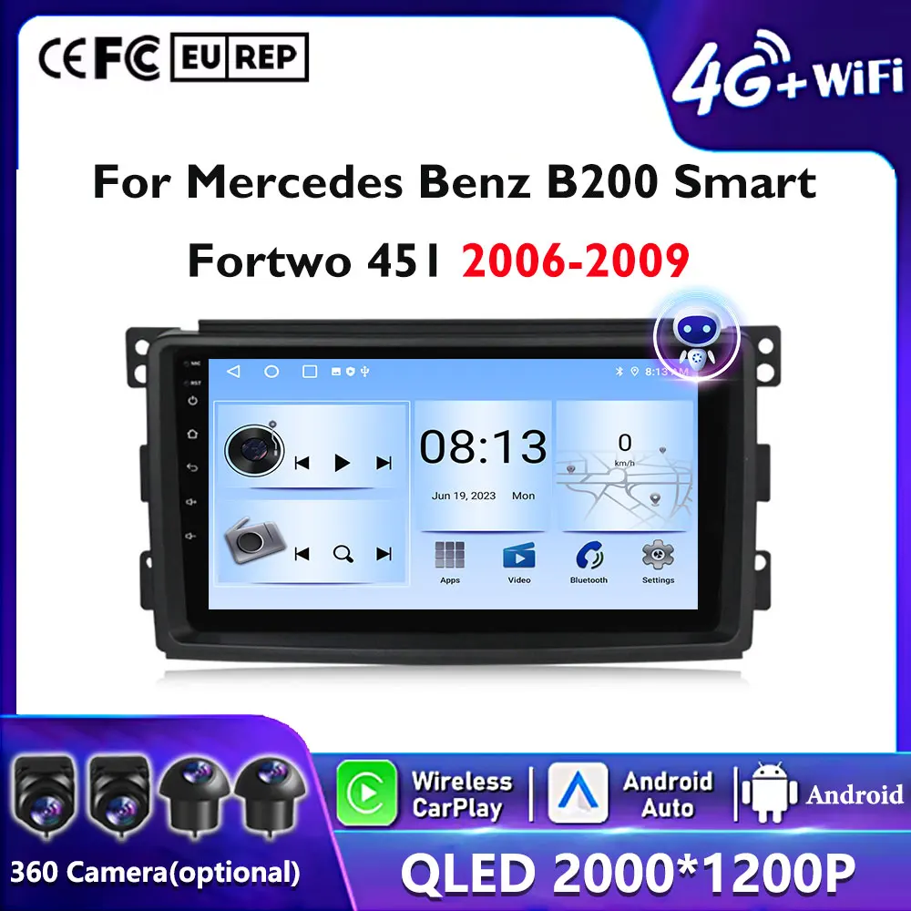 Android15 Car Radio For Mercedes Benz B200 Smart Fortwo 451 2005-2006 Wireless Carplay Android Auto Car Multimedia Stereo 4G din $80.94