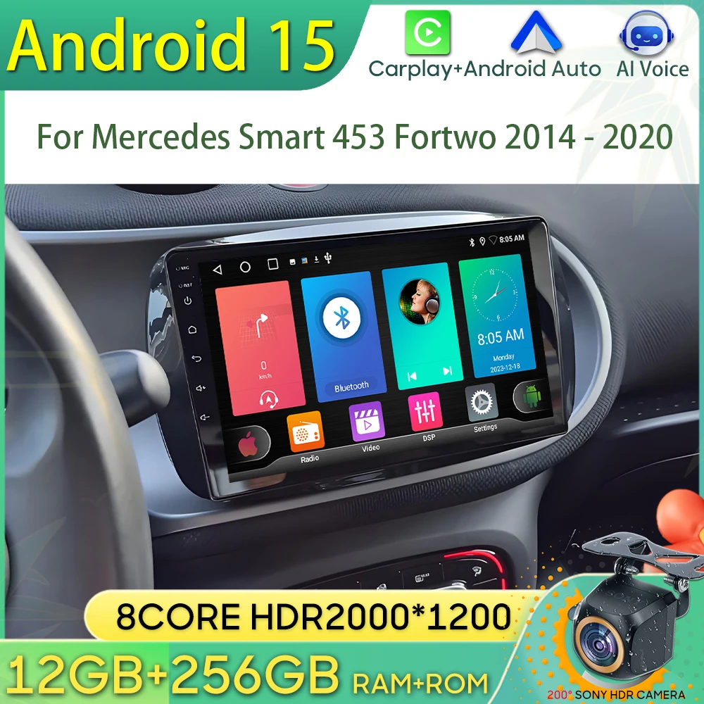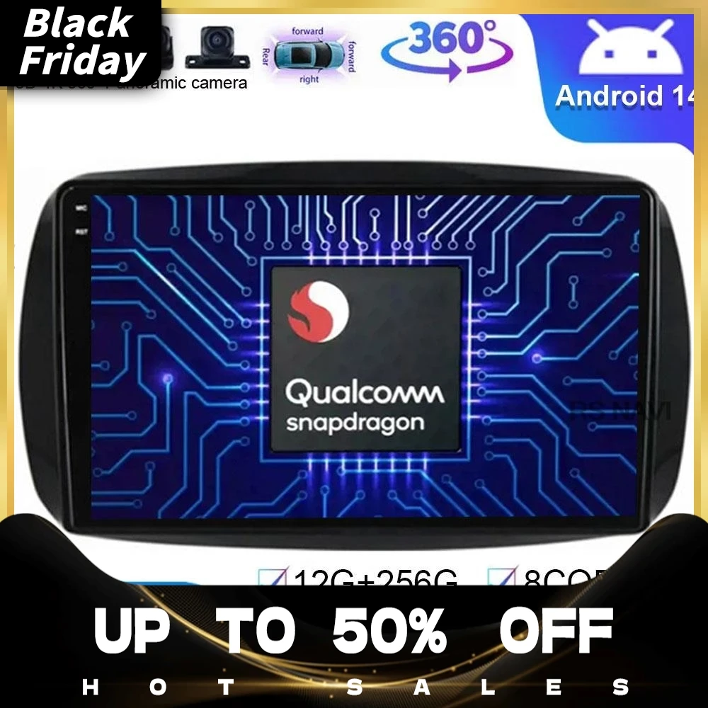 13.3inch Android 14 Carplay Auto Car Multimedia Player For Mercedes Benz smart 453 Fortwo 2014-2020 Autoradio GPS Stereo 2din HU $353.88