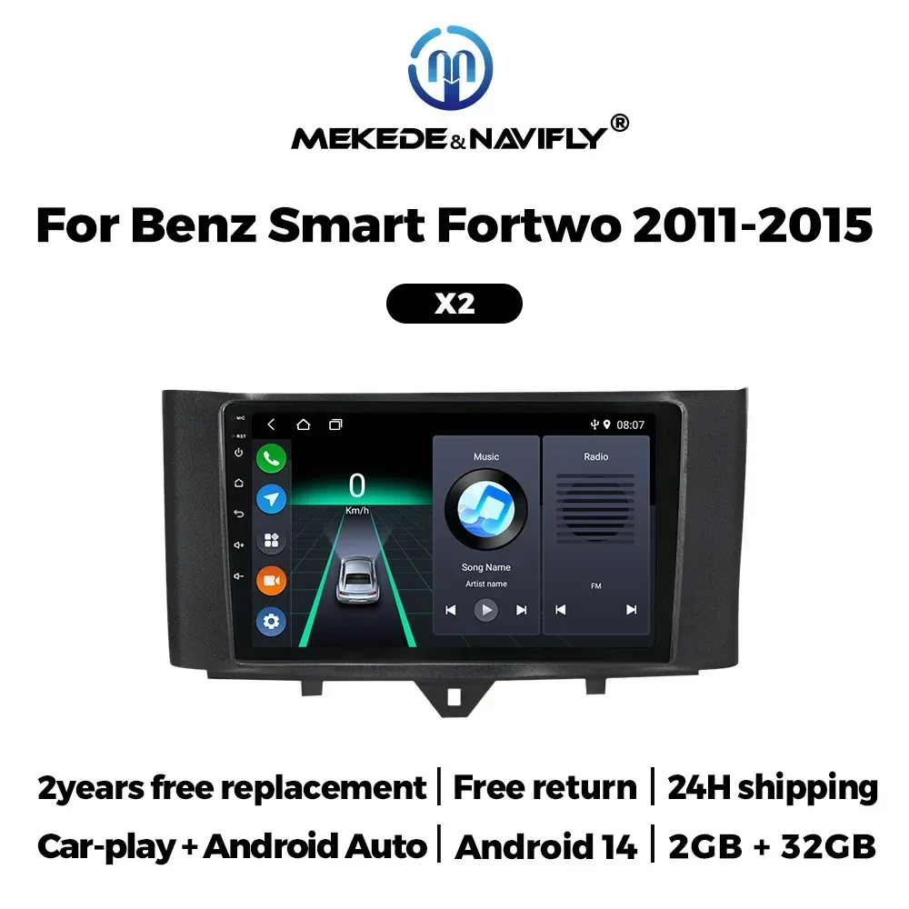 Android 14 For Mercedes Benz Smart 453 Fortwo 2014 2015 2016-2020 Car Radio Multimedia Navigation Video Player GPS No 2din Audio $85.64