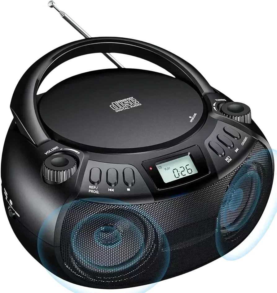 Portable CD Player Boombox with AM/FM Radio, Wireless Connectivity, USB/AUX Input & Stereo Speakers - Supports CD/CD-R/CD-RW/MP3 $55.58