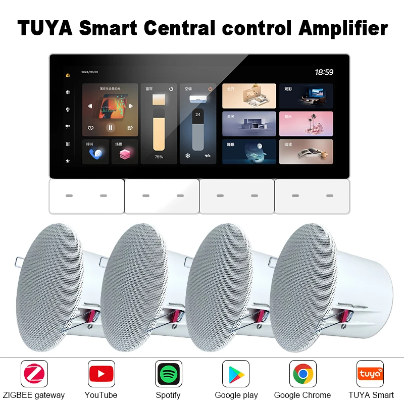 Smart Audio System TUYA Home Sound in Wall Amplifier Android 11 system WiFi Bluetooths Amp with Stereo Ceiling Speaker Kit Hotel $98.46