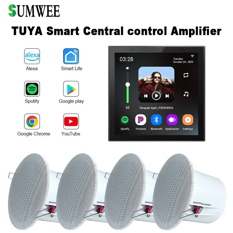 4 Inch Android 11 Smart Tuya Audio System Home Bluetooths in Wall Amplifiers Background Music Music Player with Ceiling Speakers $107.17