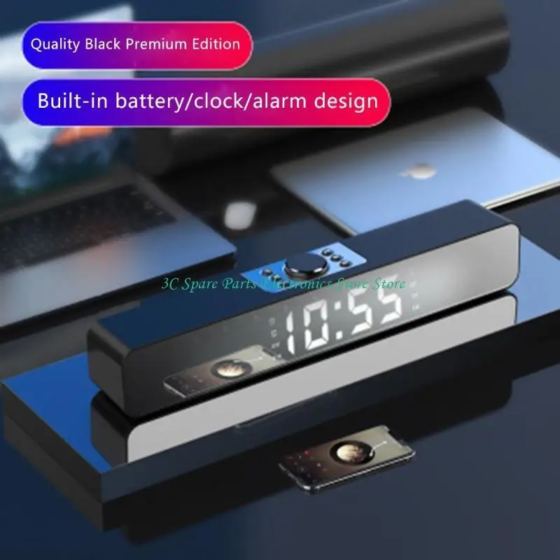 SZ Bluetooth-compatible 5.0 Wireless Speaker LED Display Mirror DesignSound Bar USB Connect Home Theater IPX5 Waterproof $10.05
