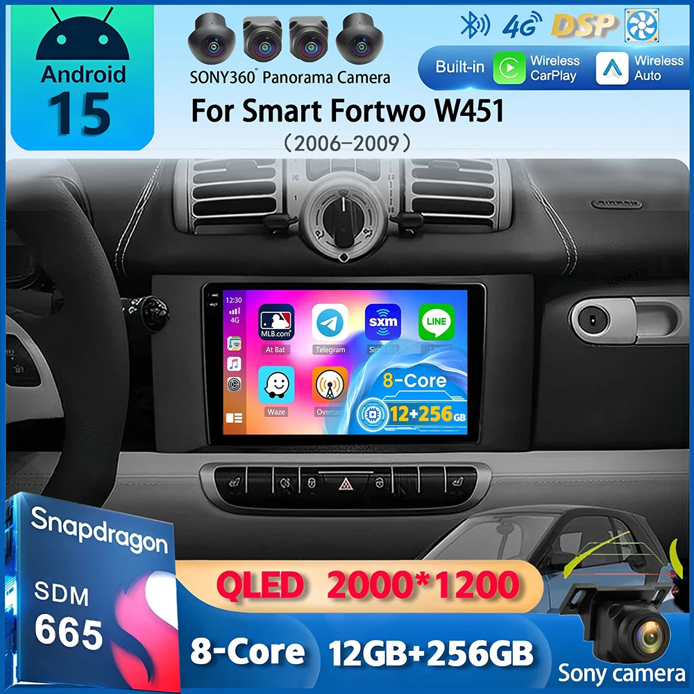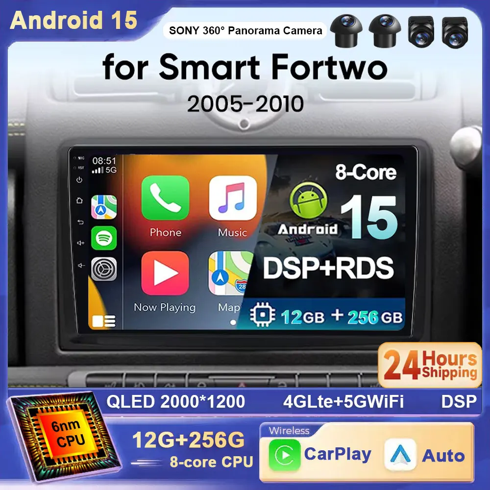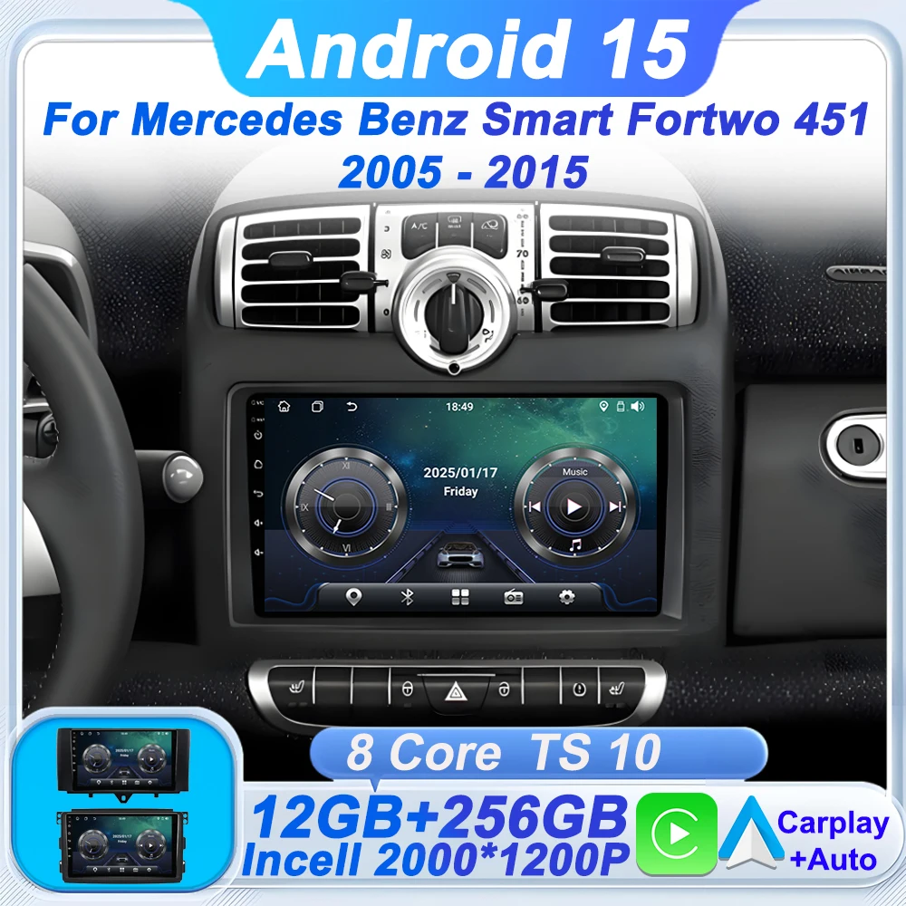 Android 15 Carplay For Smart Fortwo W451 2006 2007 2008 2009 Car Radio GPS Navigation Multimedia Video Player Stereo No 2Din DVD $83.93