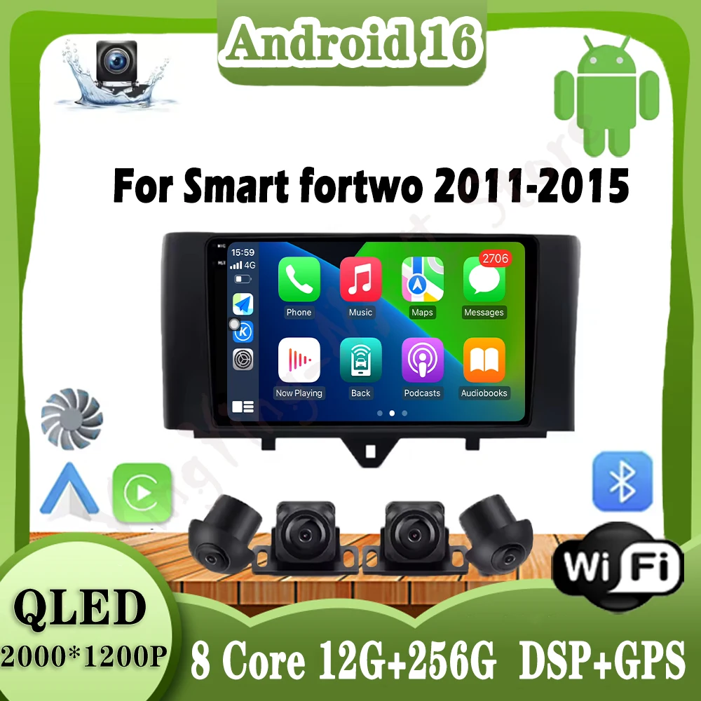 Android 15 Car Radio For Mercedes Benz Smart Fortwo 2 2010 - 2015 Head Unit QLED BT Qualcomm 2DIN Multimedia Video Player NAVI $84.41