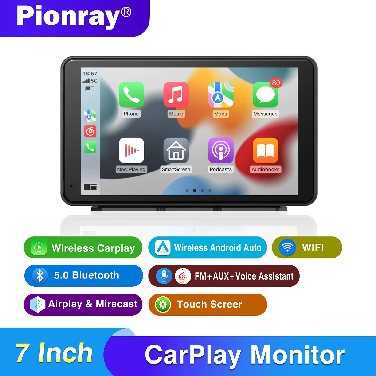 Pionray Portable CarPlay 7'' Smart Touchscreen with Car Stereo, Wireless Android Auto/Mirror Link/ AUX Connection/FM/GPS $44.22