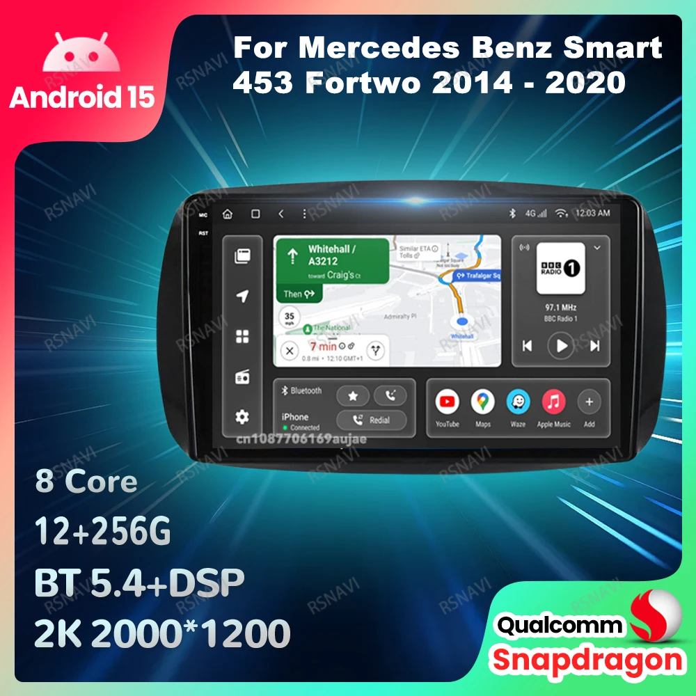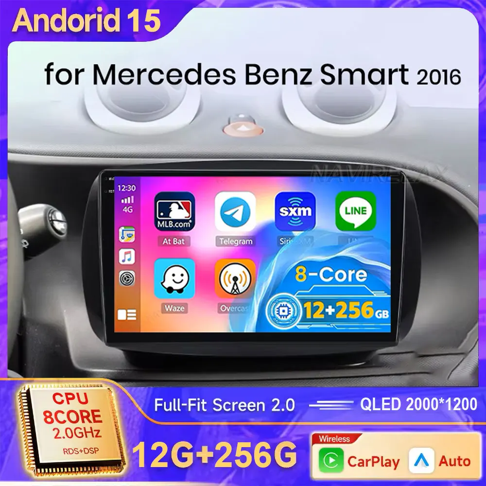 Car Radio Android 15 For Mercedes Benz Smart 453 Fortwo 2014 - 2020 Multimedia Head Unit DSP 5G WIFI Qualcomm BT QLED Navigation $88.19