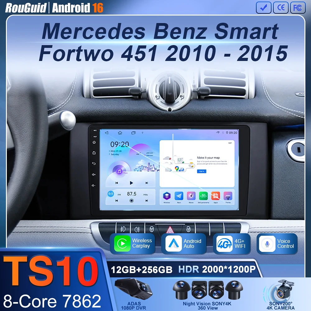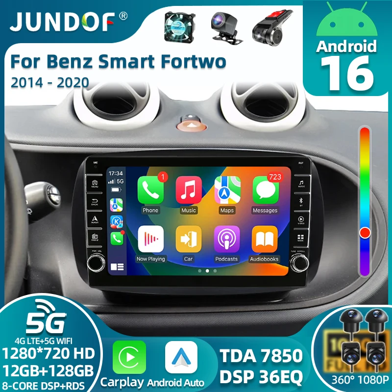 Android 16 Car Radio 4G+WIFI Carplay For Mercedes Smart 453 Fortwo 2014 - 2020 Autoradio Multimedia Player QLED Screen $90.79