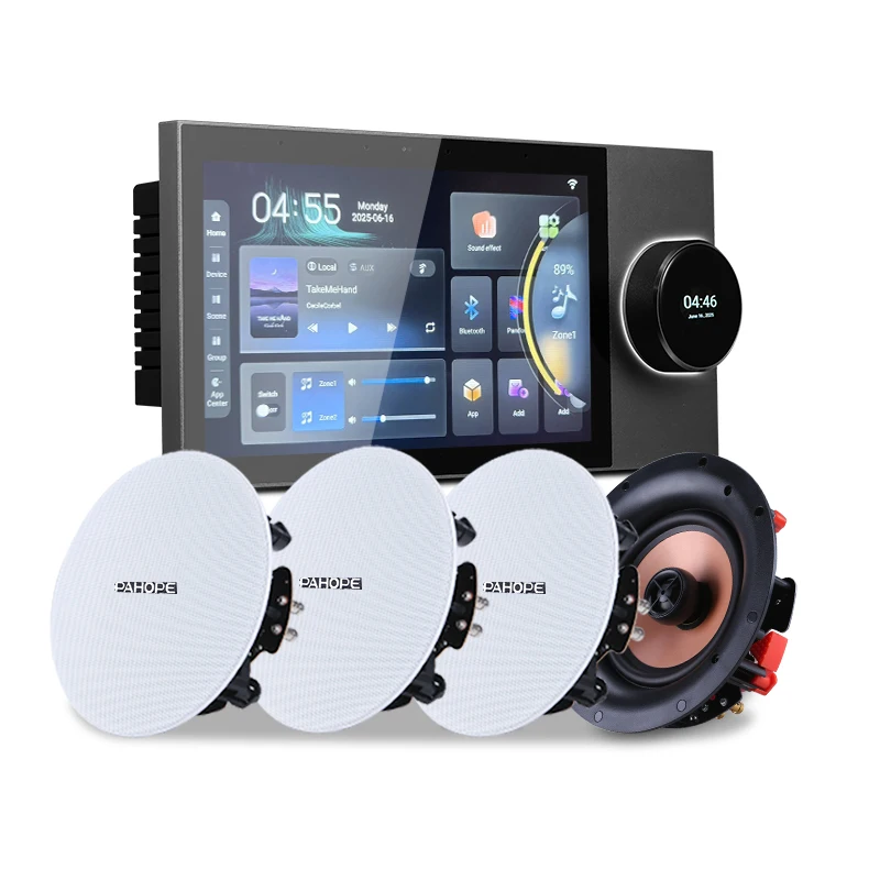 Tuya Smart Home 7-inch Background Music Console System Home Theater Audio Controller with 4* 5-inch Ceiling Speakers $476.77
