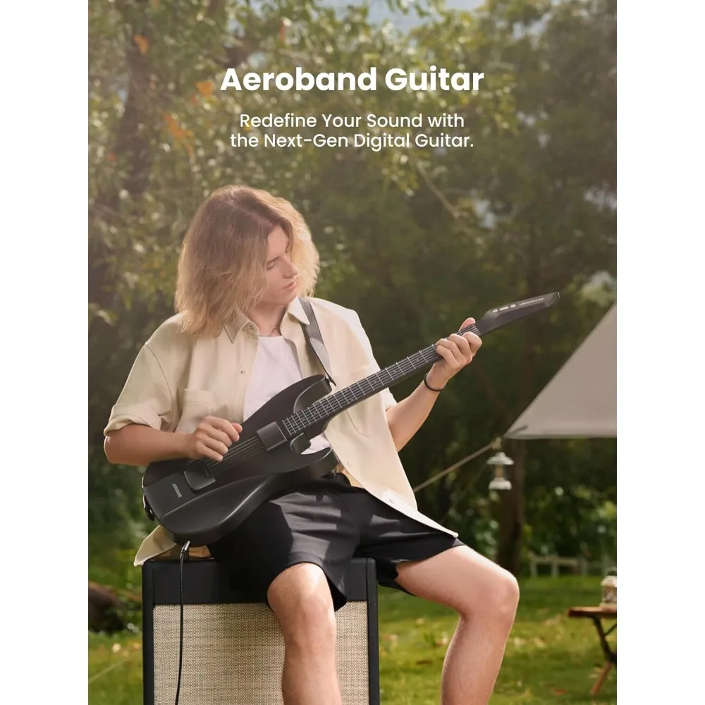 Smart Silent Travel Guitar with Silicone Strings Detachable Fretboard Headphone Jack Built-in Speaker Drum System APP Control $325.22