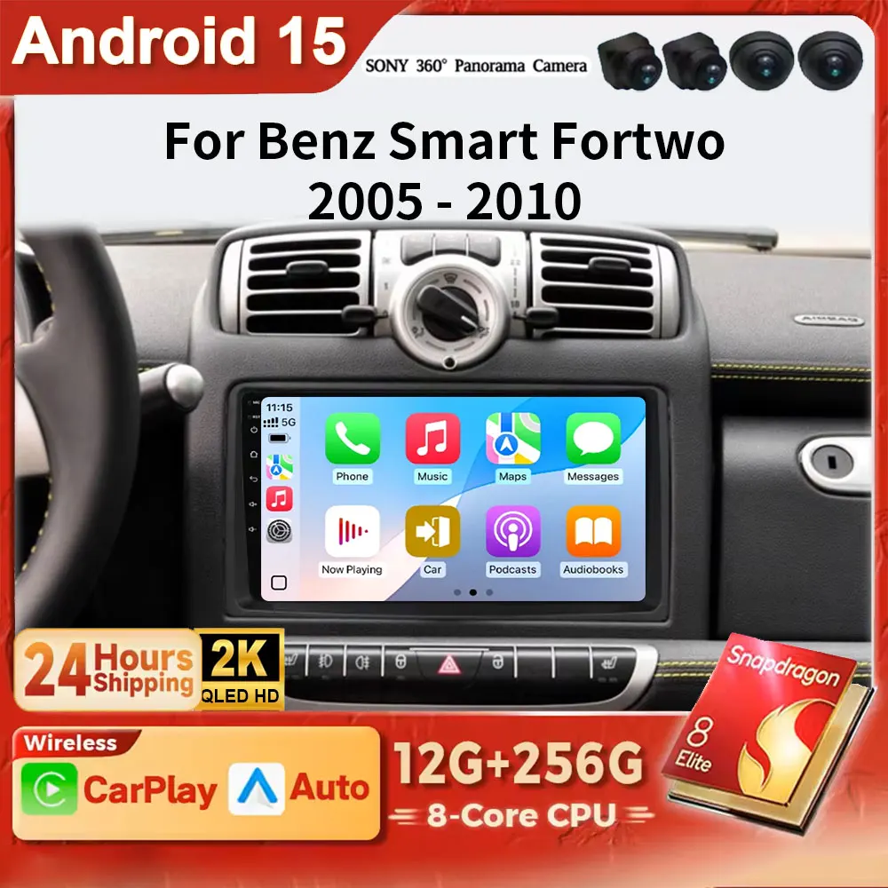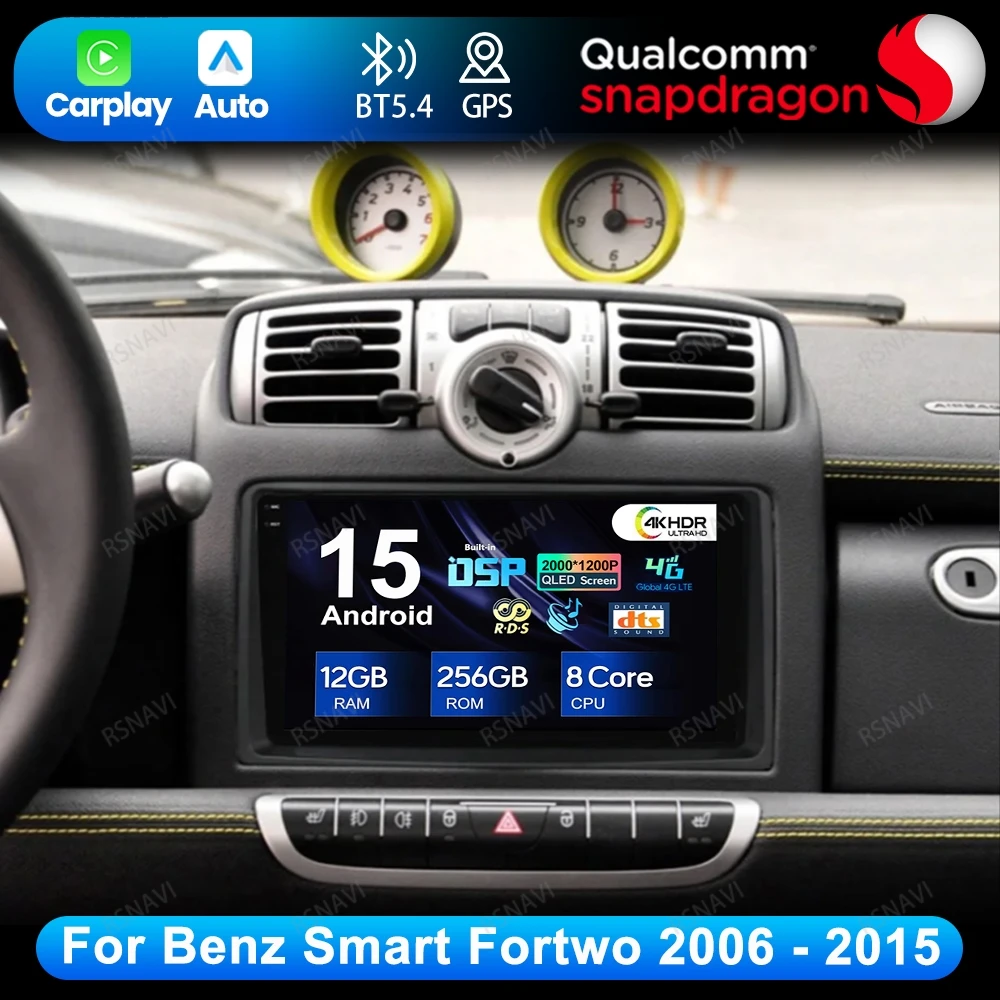 Android 15 For Benz Smart Fortwo 2006 - 2015 Navigation Wireless Carplay Auto DSP DVD Stereo Multimedia 4G LTE Qualcomm GPS BT $85.02