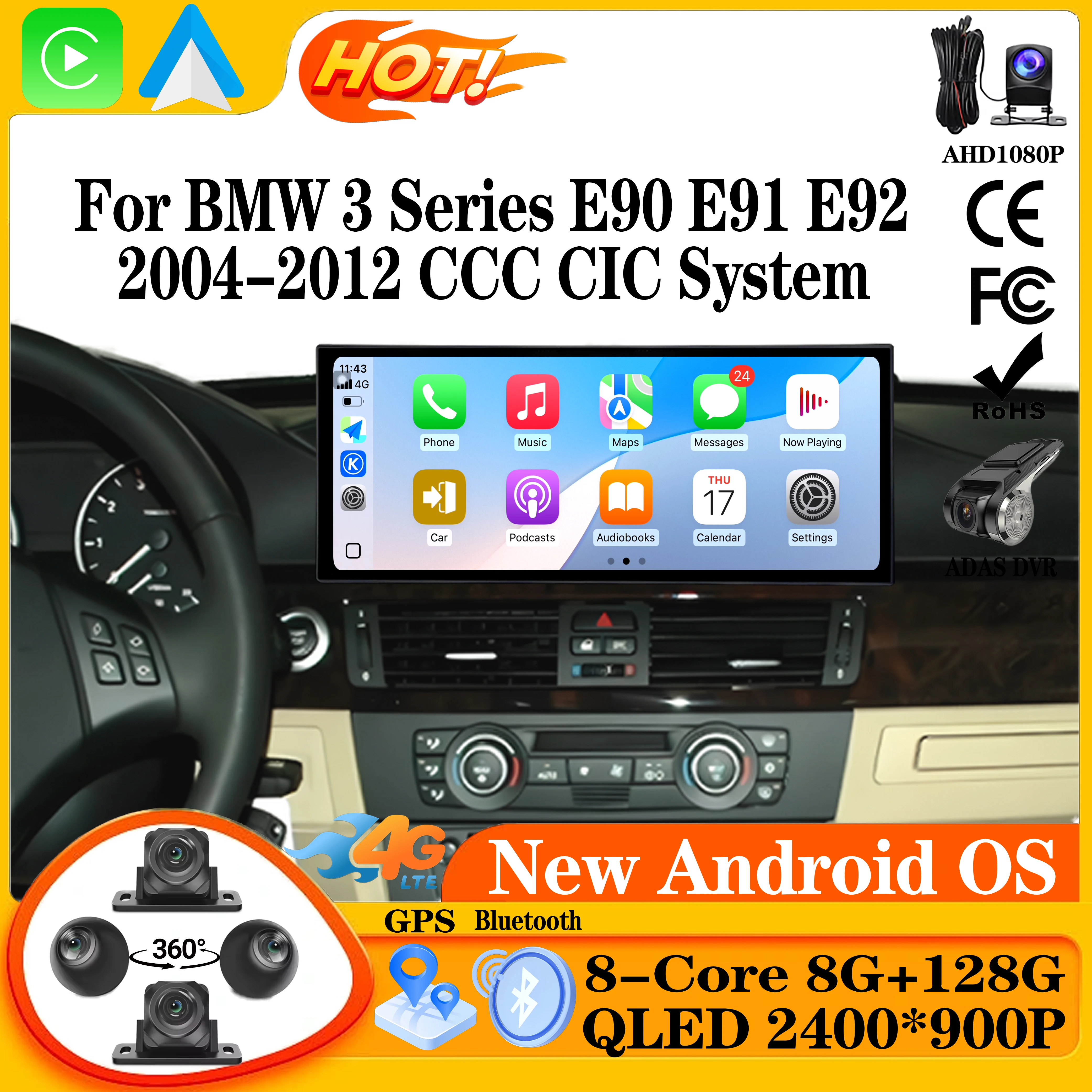Wireless Carplay DSP For BMW 3 Series E90 E91 E92 2004-2008 2009-2012 CCC CIC System Android 15 Carplay Bluetooth Smart System $197.54