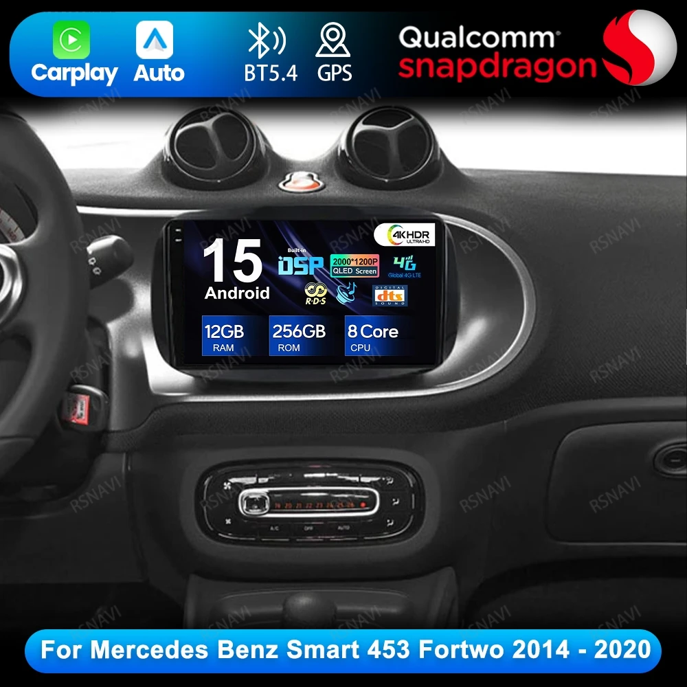Android 15 For Mercedes Benz Smart 453 Fortwo 2014 - 2020 Head Unit 5G WIFI Car Radio BT GPS DSP Stereo Navigation Multimedia $88.31