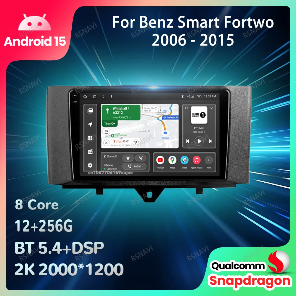 Car Radio Android 15 For Benz Smart Fortwo 2006 - 2015 Autoradio DVD Stereo Navigation QLED BT Multimedia 4G LTE Head Unit DSP $87.20