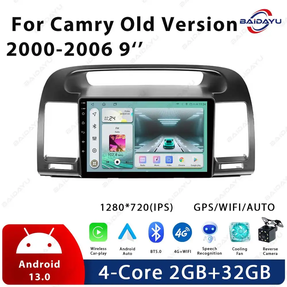 Baidayu For Toyota Camry 2000-2006 Car Radio 9 Inch 32G Android Auto Wireless CarPlay BT GPS 2 Din Smart Car Systems Navigation $175.78
